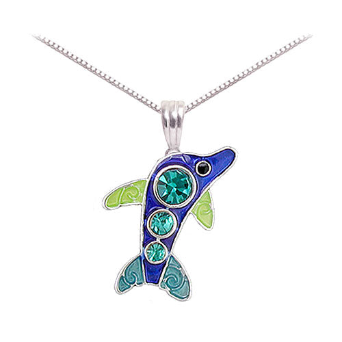 These sparkly Crystal Dolphin earrings are fun and loved by dolphin fans everywhere. Designed by artist Julie Mammano with hand applied fired glass enamel and crystals for a little extra shine are perfect for your dolphin earring collection for all ages! A matching crystal dolphin necklace is also available for a very special dolphin jewelry gift.