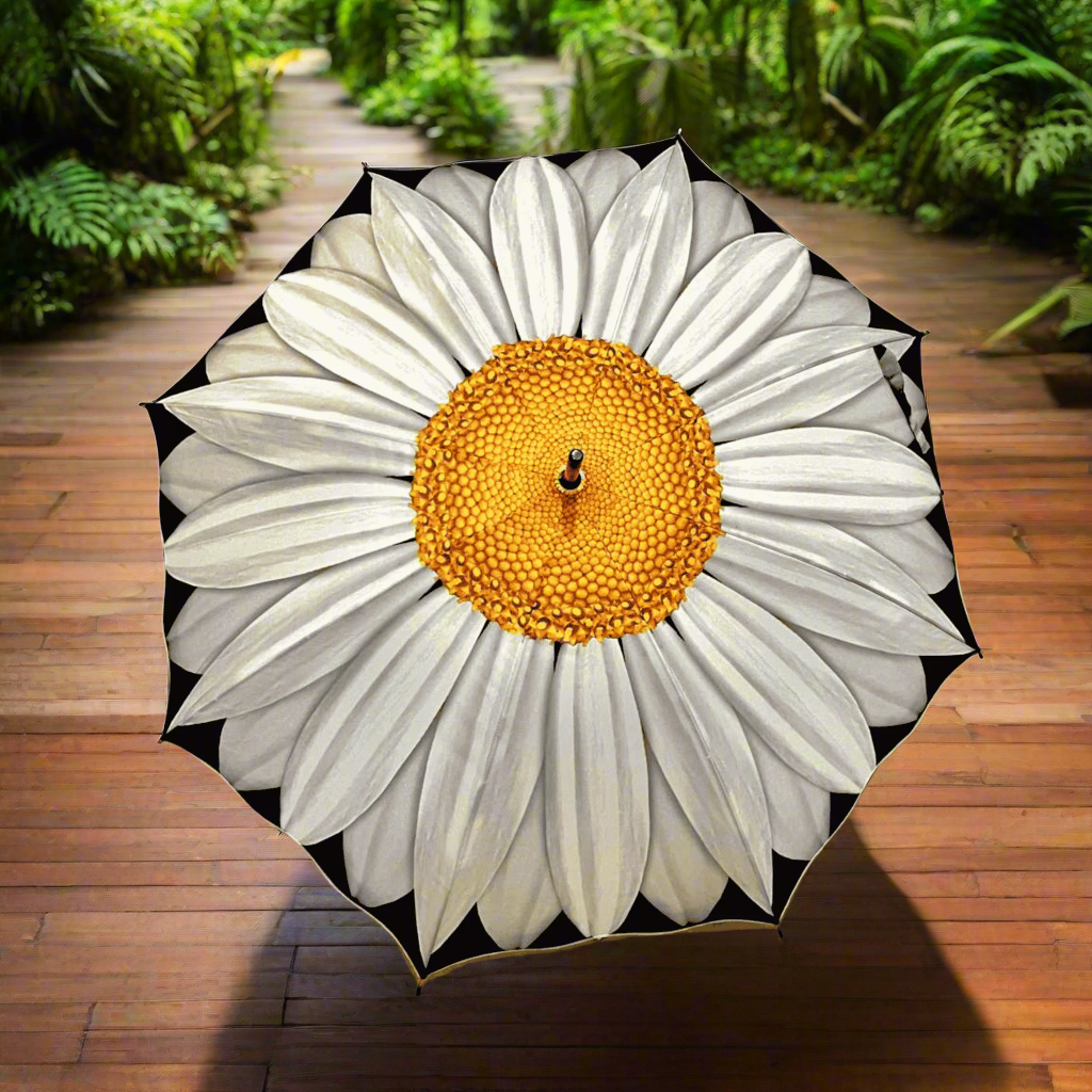 Transform rainy days into vibrant adventures with our Daisy Floral Umbrella. This stunning stick style features a gorgeous daisy print that will bright up any cloudy day. Not just a rain accessory, but a fashion statement that shows off your love for nature and style.