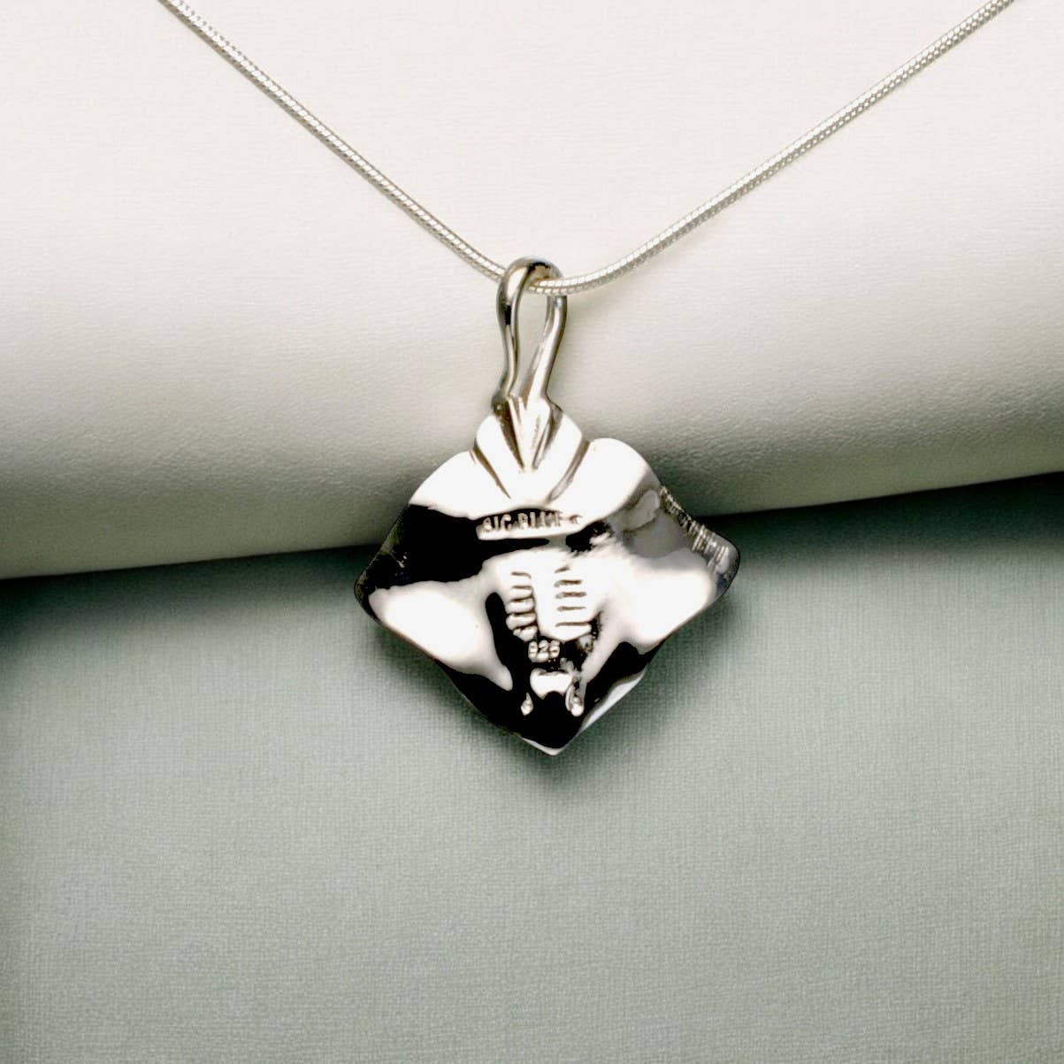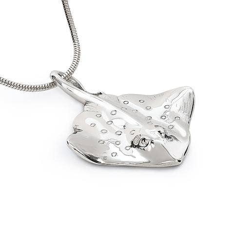Double Sided Sterling Silver Stingray Pendant - Elegant Marine Jewelry