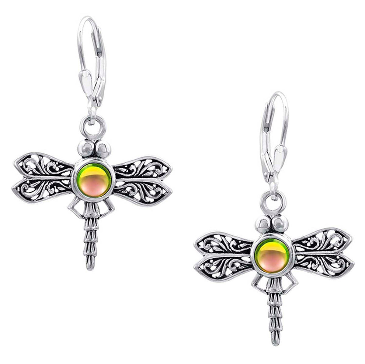 Matching Fire Crystal Sterling Silver Dragonfly Earrings