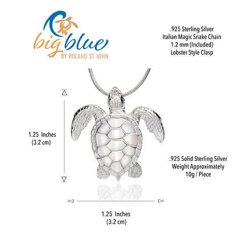 Artist Roland St. John has created a stunning homage to the green sea turtle, one of the ocean's most ancient and revered inhabitants. This exquisite pendant features: