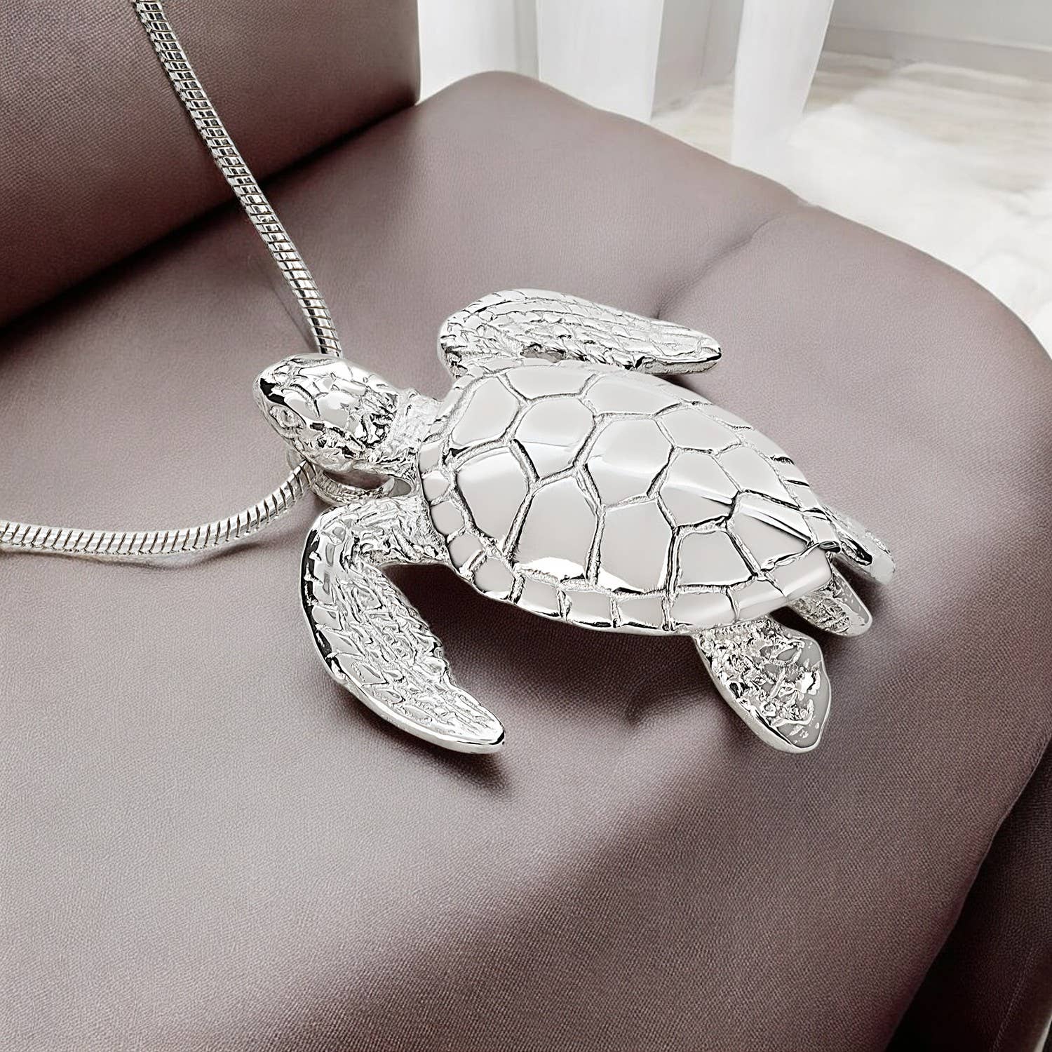 Green sea turtles symbolize longevity, wisdom, persistence, and good fortune. With lifespans that can exceed 80 years, they represent the journey through life's vast oceans with calm determination. This pendant makes a meaningful gift for anyone celebrating milestones, seeking guidance on life's path, or simply connecting with their love for these magnificent creatures.