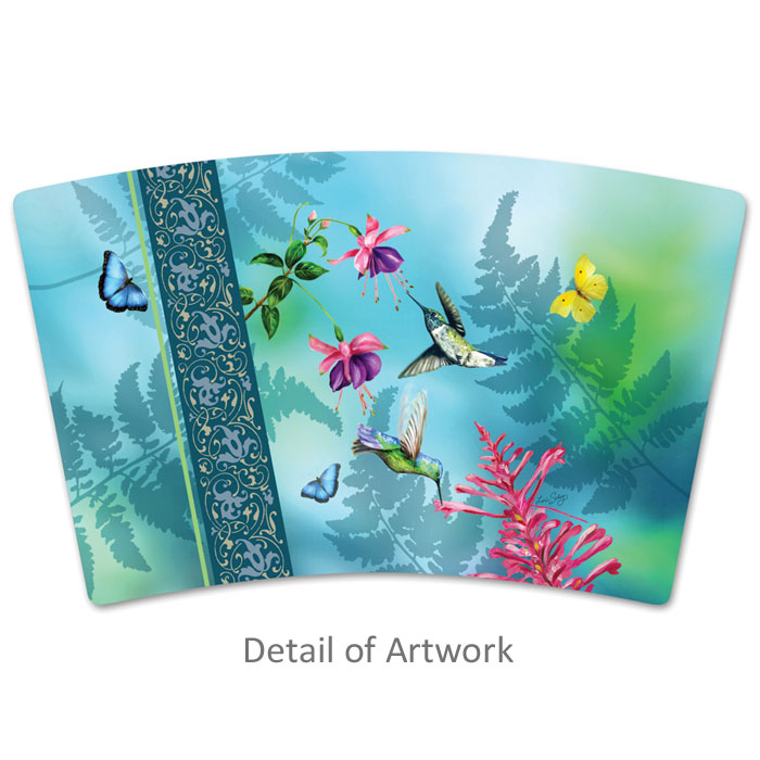 This neoprene insulated hummingbird travel mug will delight any hummingbird lover! Featuring an artful hummingbird painting, this insulated coffee tumbler will hold hot or cold beverages and fits in most car cup holders. It has a stainless steel interior and an easy open, sippable lid. Made in the U.S.A.