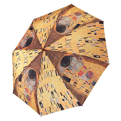 Gustav Klimt "The Kiss" Stick Art Umbrella with Unique Reverse Close Feature and Printed Art on Both Sides.