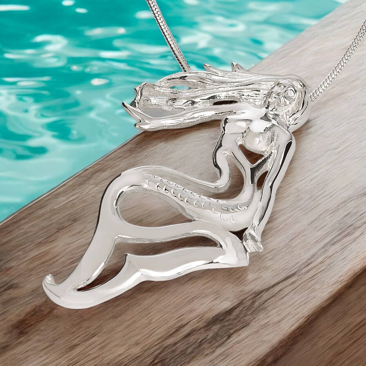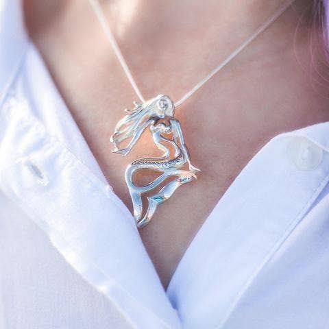 Enchant and beguile with our exquisite Lorelei mermaid pendant, a one-of-a-kind creation handcrafted in gleaming .925 sterling silver.