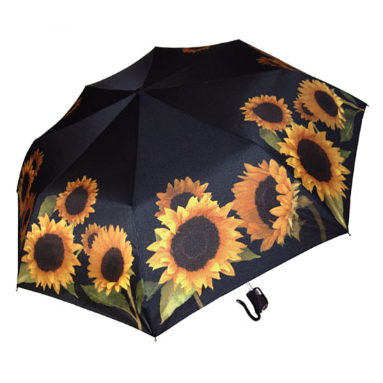 Our pretty folding Sunflower umbrella features cheery sunflowers that will brighten any rainy day! This compact floral umbrella has an auto open umbrella feature and break resistant fiberglass tips, plus a matching Sunflower umbrella cover. A favorite with flower lovers, this beautiful umbrella will make a treasured floral gift idea.
