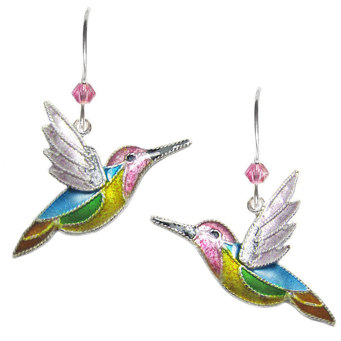 These colorful hummingbird post earrings are beautifully detailed in the traditional Cloisonne Enameling process. They are nickel free sterling silver and the hummingbird is enameled on the front and back. The sterling silver posts and backs are a great choice when buying for anyone with sensitive ears and the nice size is great for girls and women hummingbird lovers alike!