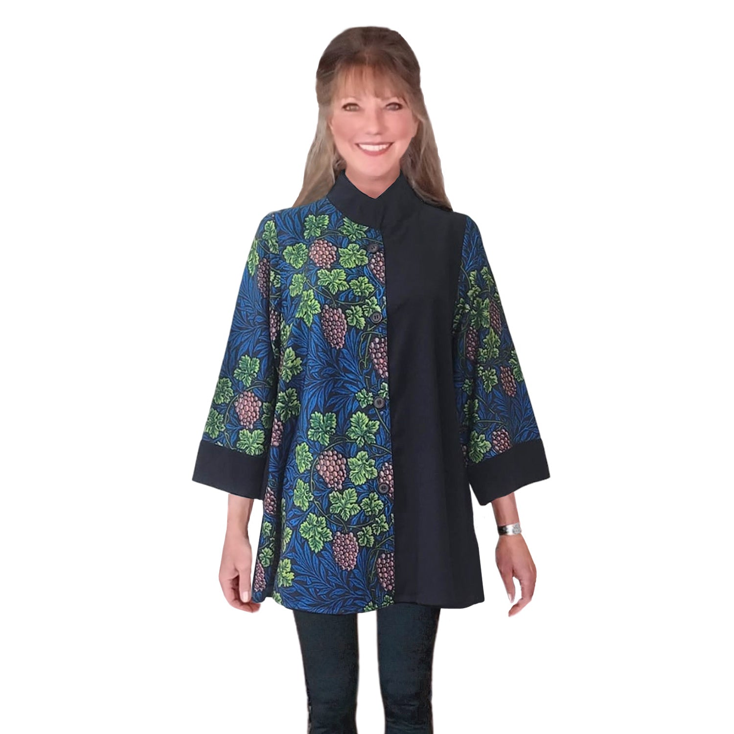 Step Out in Style Wearing this Art Swing Top, Beautifully Printed with a William Morris's Grape Leaves Tapestry Design - Wear as a Shirt or Jacket